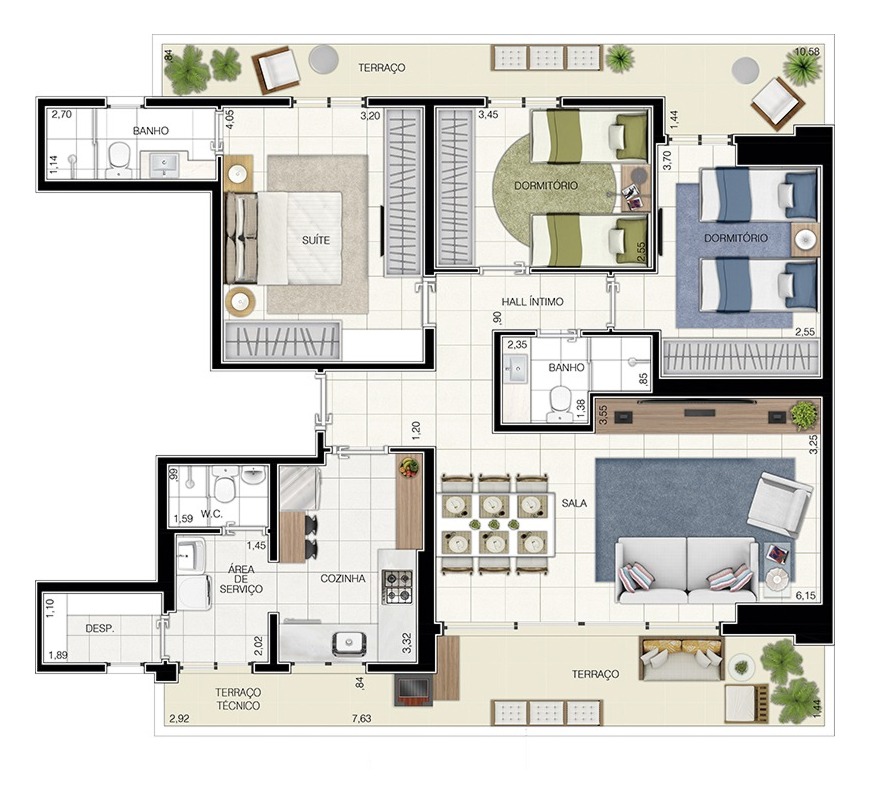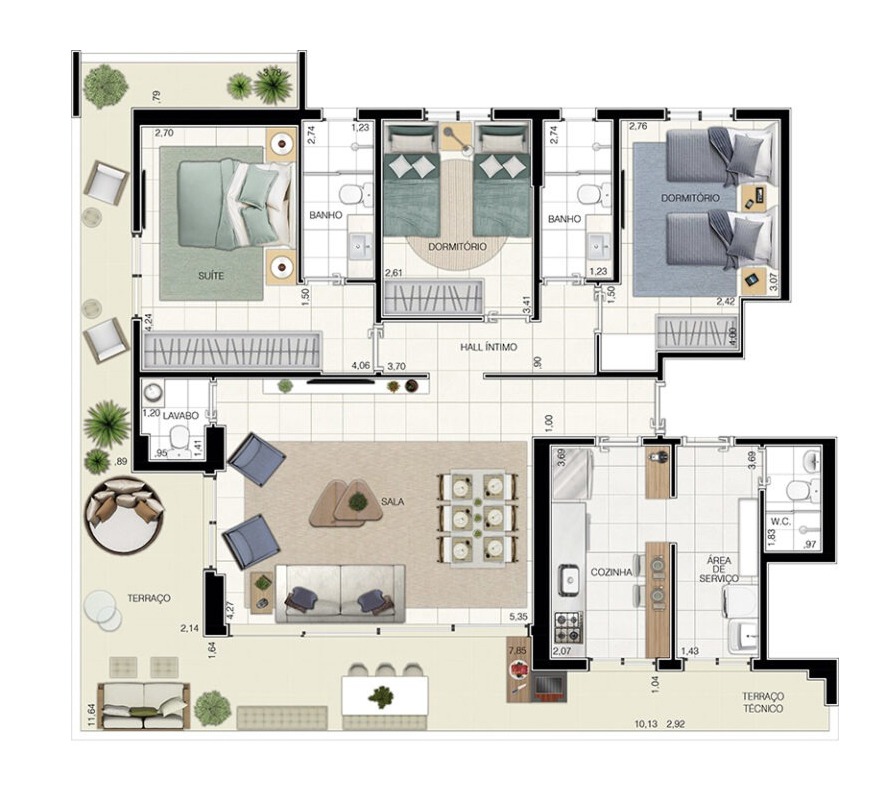 Apto. 41 e 51 | 3 dorms. com suíte | 138,68 m²
