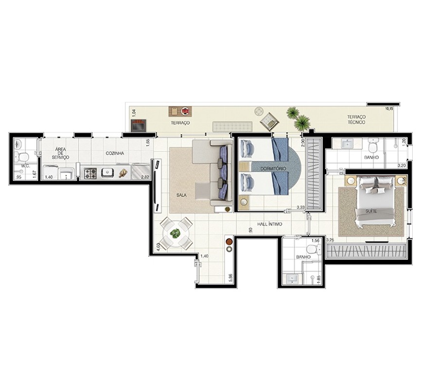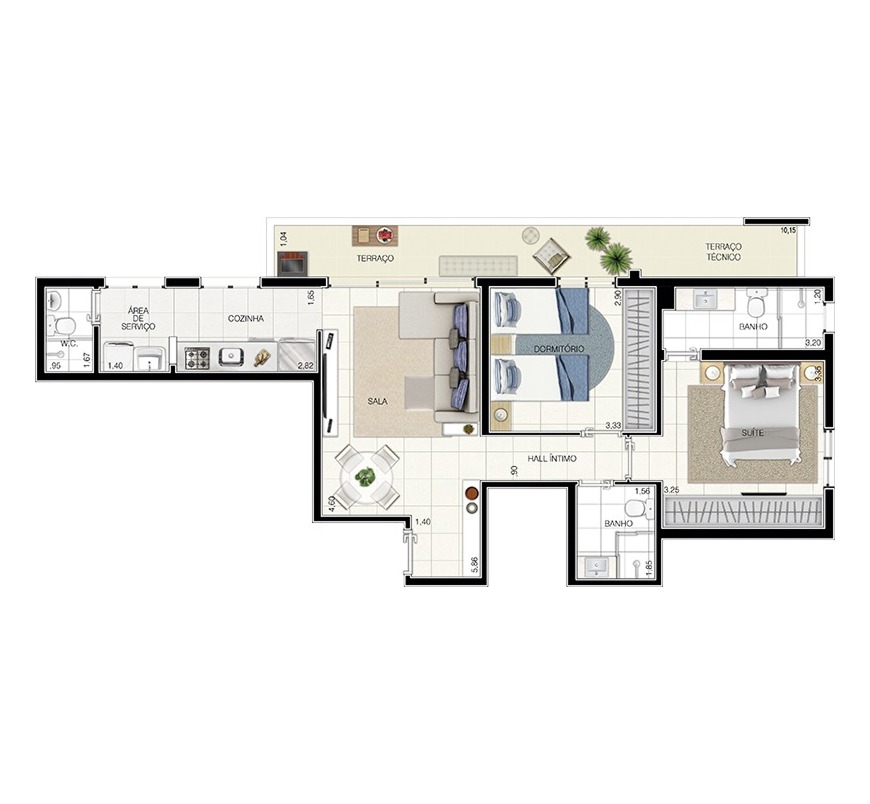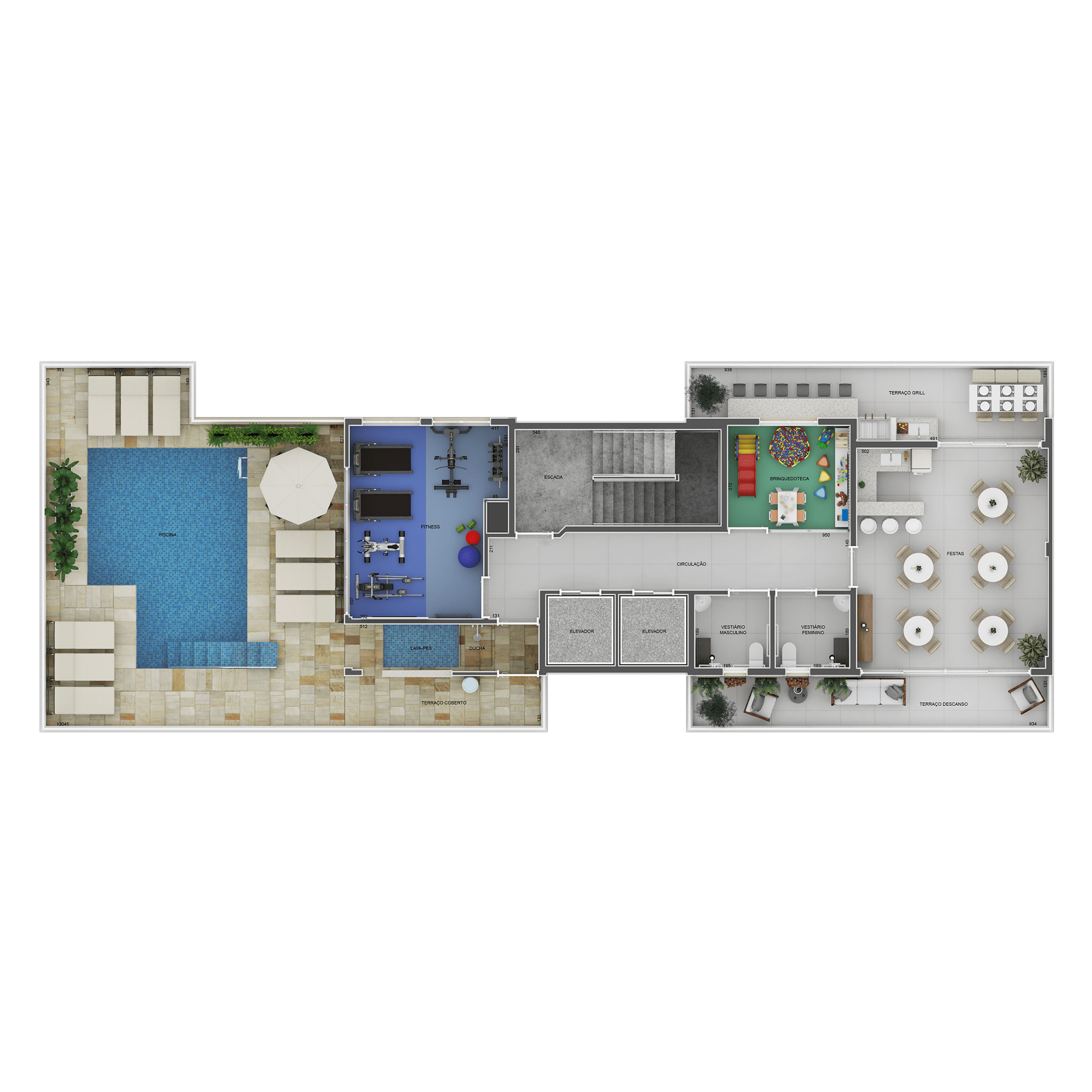 Com lazer completo na cobertura, o empreendimento alia conforto, funcionalidade e o reconhecido padrão de qualidade do Grupo Estrutura.